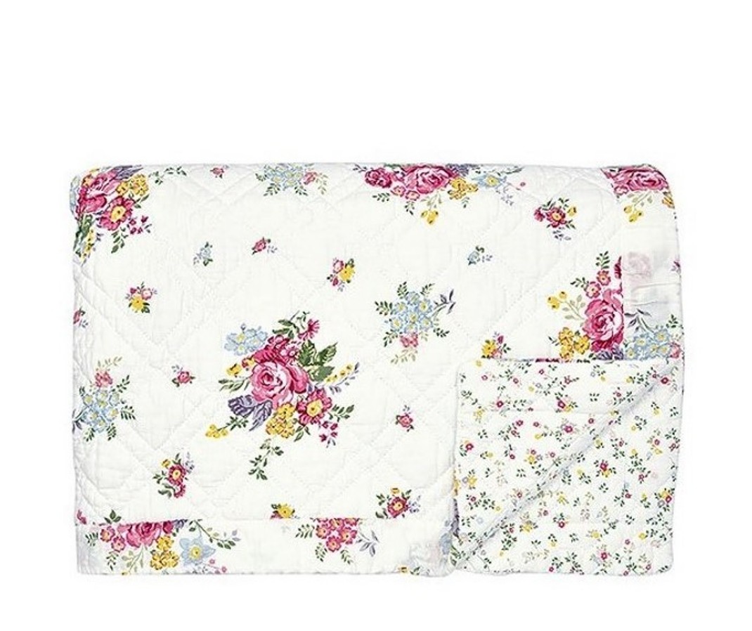 Refresh your bedroom with this lovely bedspread in 100 percent cotton. The quilted material provides a soft and cozy feel while adding structure and weight. The bedspread is reversible, featuring two beautiful patterned sides—one adorned with large romantic flowers and the other with a small floral motif. The white base creates a bright and fresh foundation that suits most interior styles, from rustic and shabby chic to modern bohemian elegance. Perfect for giving your double bed a stylish lift, while the quilted design makes it extra comfortable and inviting.