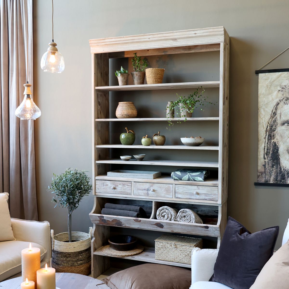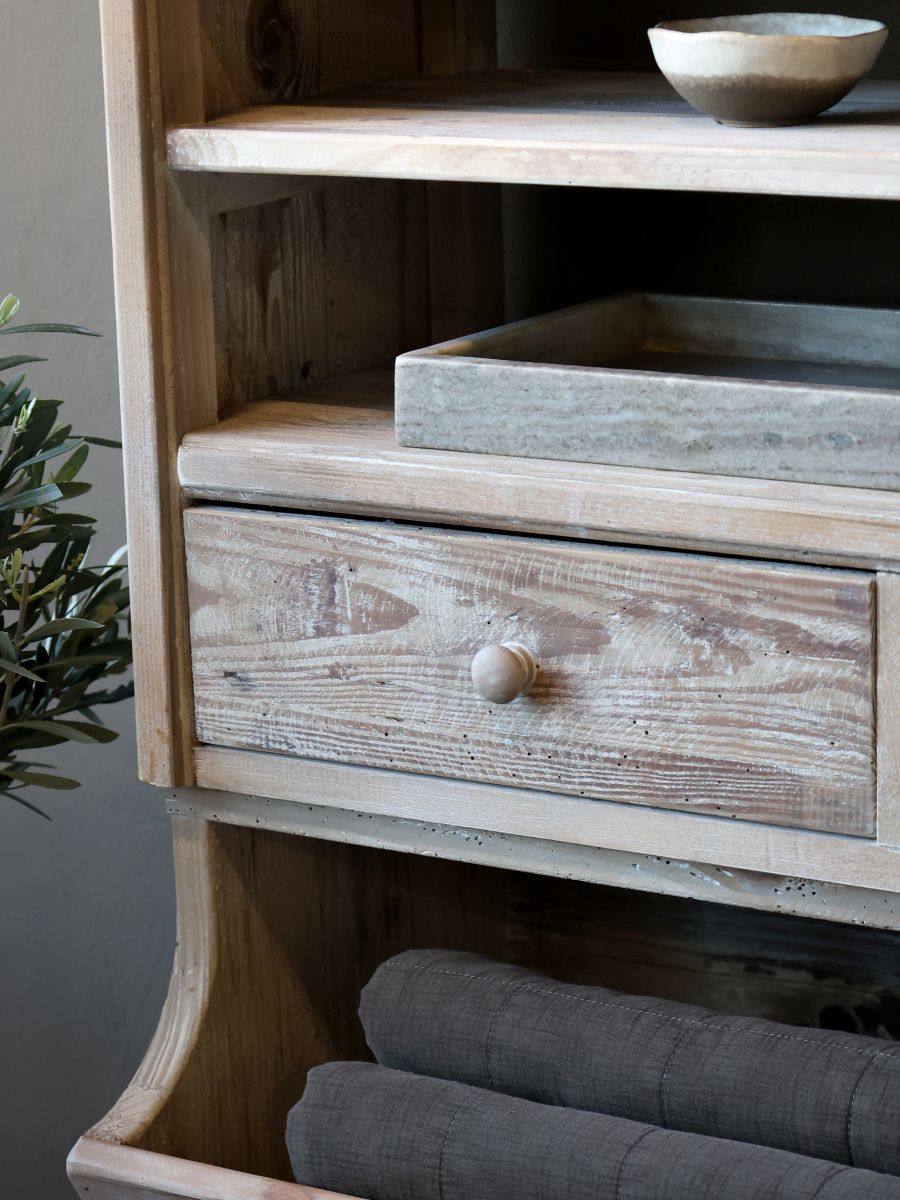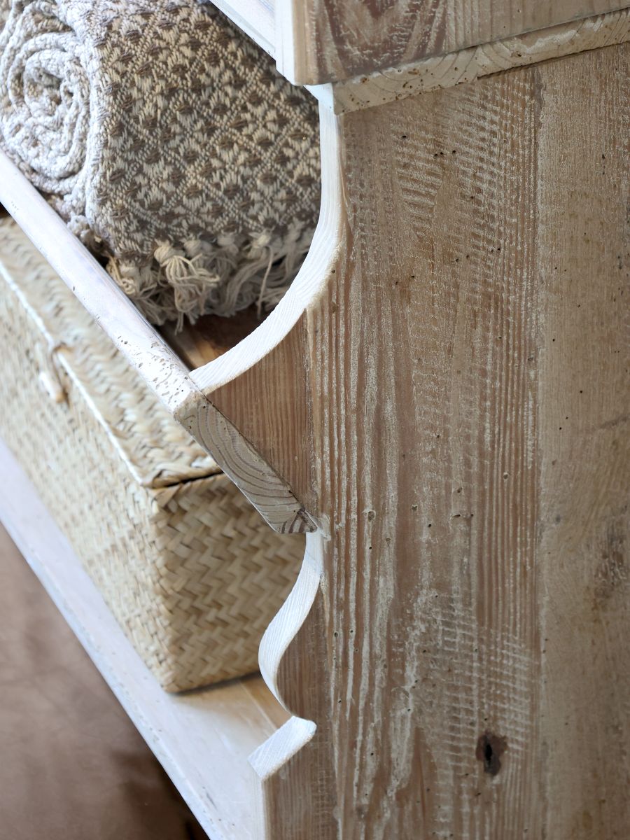 The Calais bookshelf is an elegant piece of furniture crafted from reclaimed pine wood. It combines timeless design with eco-friendly materials, making it the perfect choice for the conscious consumer. With its spacious shelves—each capable of holding up to 10 kg—this bookshelf offers the perfect solution for organizing books and decorative items, while adding a unique and stylish feel to your room. The shelf also features two practical drawers for smaller storage needs.