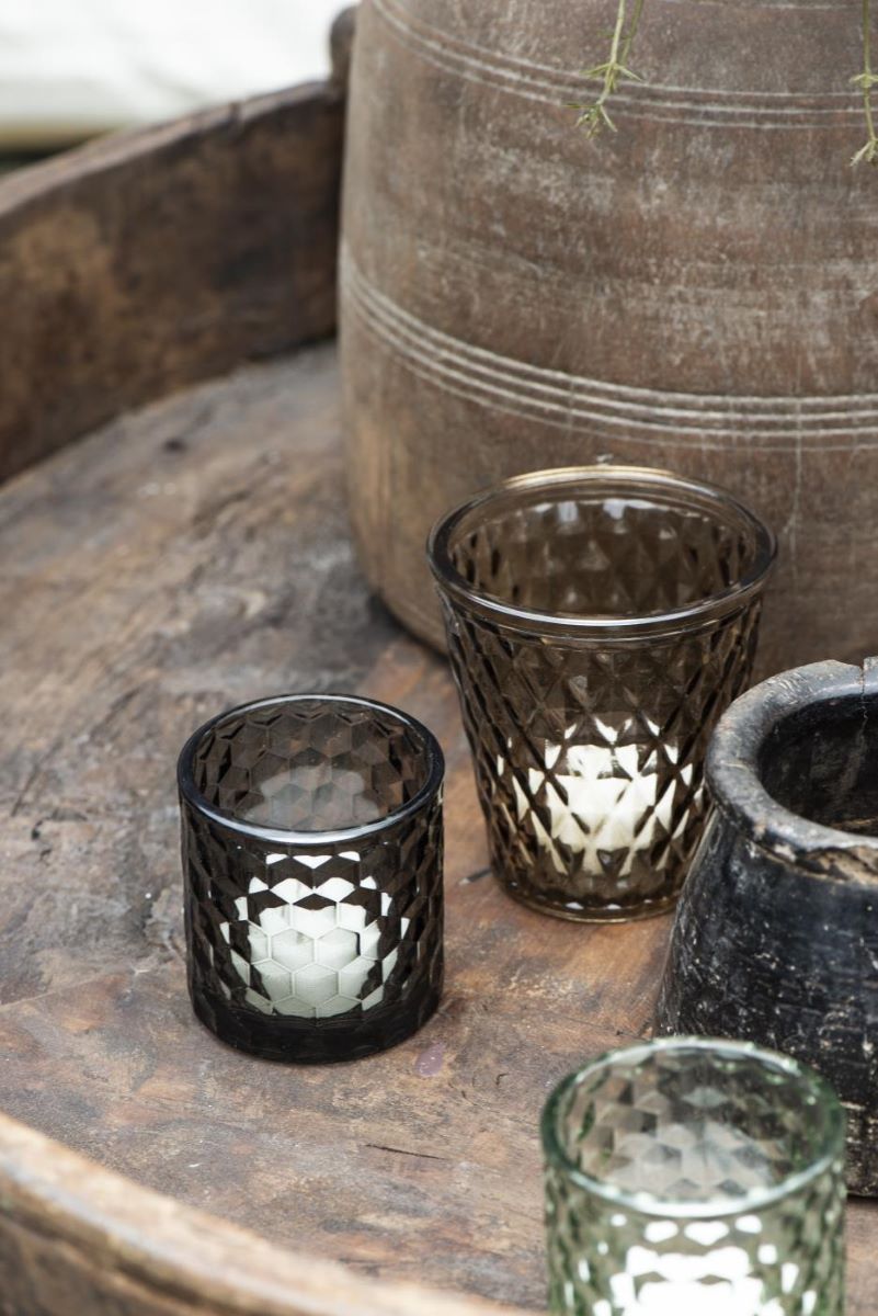 Create a cozy atmosphere with this beautiful candle holder in grey glass from Ib Laursen. Suitable for one tea light. Available in several colours.