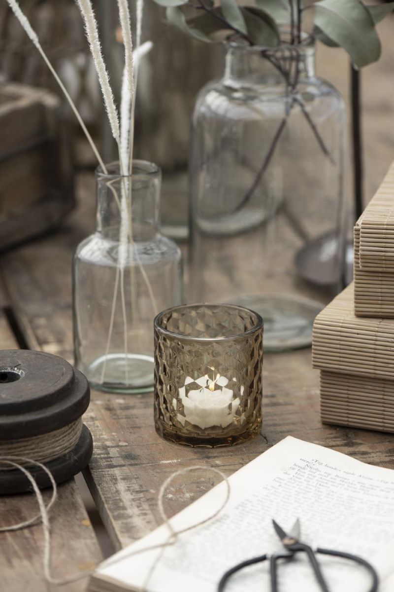 Create a cozy atmosphere with this beautiful candle holder in ochre-coloured glass from Ib Laursen. Suitable for one tea light.
