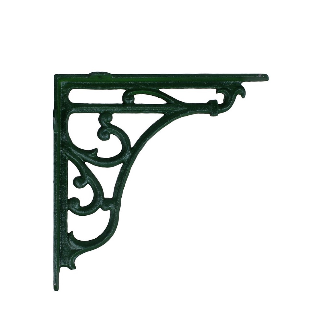 Green cast iron bracket in a classic design with fine details. Perfect for supporting shelves.