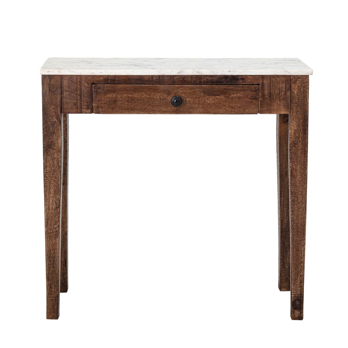 Elegant console table in 100 percent mango wood that combines functionality and style. With a small, practical drawer and a beautiful marble top, it creates a sense of luxury and classic elegance. Suitable for smaller spaces while providing practical storage space for small items. The furniture is FSC® certified.