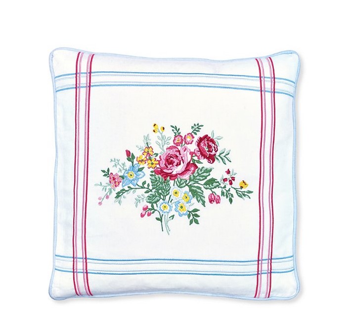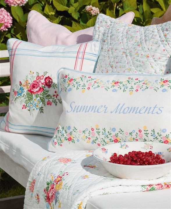 Beautiful cushion cover in 100 percent cotton from Greengate’s Elina series. The floral pattern on the front is in blue and pink and is highlighted by its neutral background. Looks just as good on the sofa as on the bed.