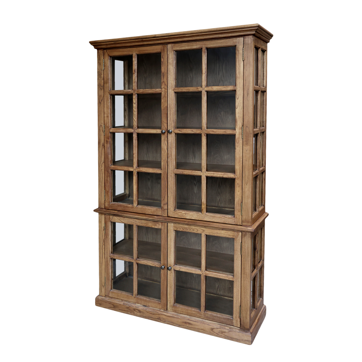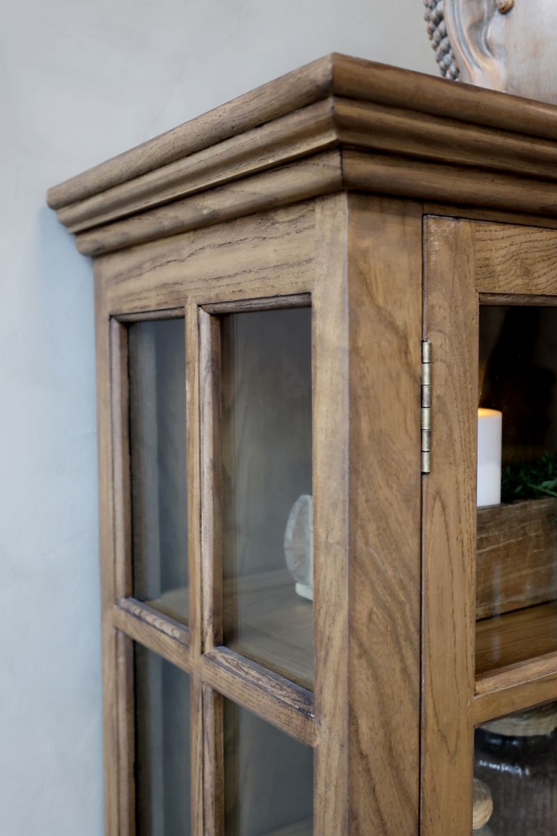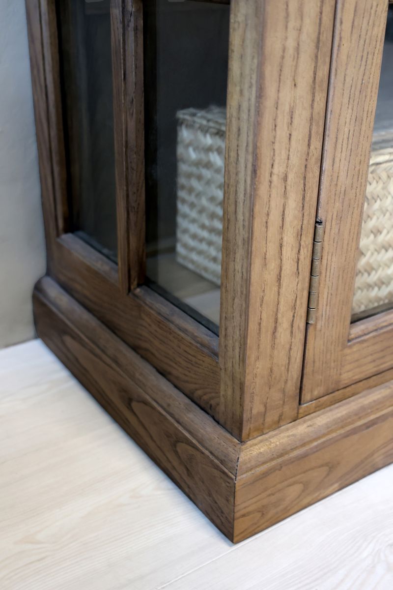 Beautiful handmade display cabinet in solid poplar wood. The four glass doors and spacious shelves provide plenty of space for storing and displaying china, glassware or favourite decorations. The French country style of the display cabinet blends beautifully with a modern home, thanks to the timeless craftsmanship and fine details. Fits in the living room, kitchen or dining room, combining aesthetics and practicality. Each shelf can hold 28 kg.
