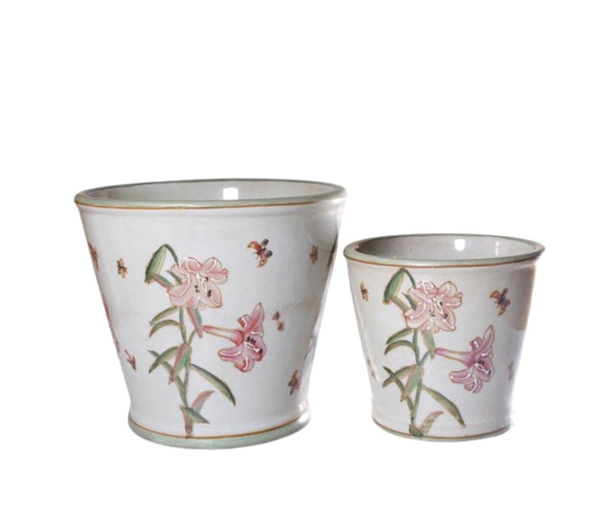 This elegant porcelain flower pot will add a touch of timeless charm to your home. Featuring a delicate hand-painted floral motif in soft pink tones, complemented by subtle decorative details, it brings a romantic and vintage-inspired feel to any space. As the design is hand-painted, slight variations may occur.